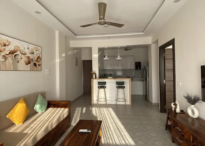Located around a 25-minute walk from the Coco Beach, North Goa 1Bhk Serviced Apartment In Candolim With Pool Gym And Balcony overlooks the inner courtyard. Bicycle and car hire is available at this spacious apartment and the area is popular for bike riding and pool.